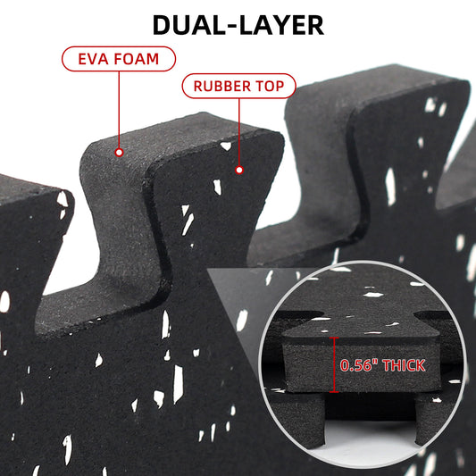 HIAARO 0.56in Thick 48 Sq Ft Exercise Equipment Mats, 12 Tiles Rubber Top EVA Foam Workout Mats, Interlocking Gym Flooring for Home Gym, 24 x 24in, Black & White