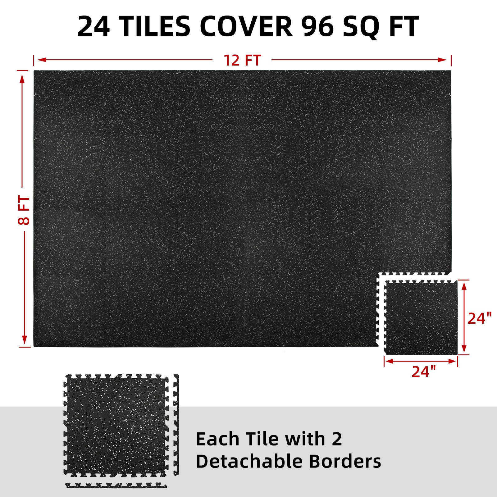 HIAARO 0.56in Thick 96 Sq Ft Exercise Equipment Mats, 24 Tiles Rubber Top EVA Foam Workout Mats, Interlocking Gym Flooring for Home Gym, 24 x 24in, Black & White